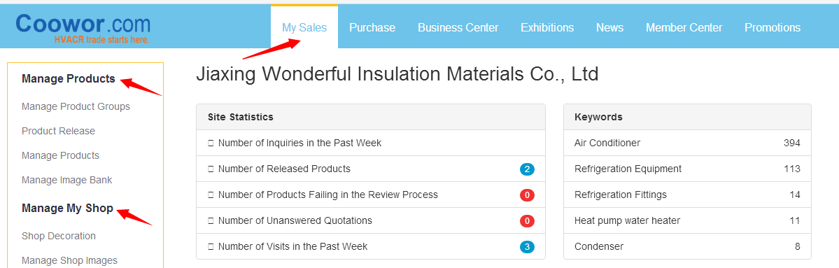 Manage My Shop: decorate your shop which includes all the enterprise information, such as products, company introduction, exhibitions, and contact info. In this way, buyers will have a comprehensive knowledge of the enterprise.